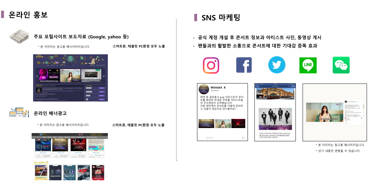 또한, 홍콩 공연의 경우, 국민 프로듀서가 뽑은 대표적인 아이돌의 팬미팅으로 준비되어지며, 홍콩의 충성도 높은 팬덤형성으로 좋은 티켓판매 결과를 기대하고 있습니다.